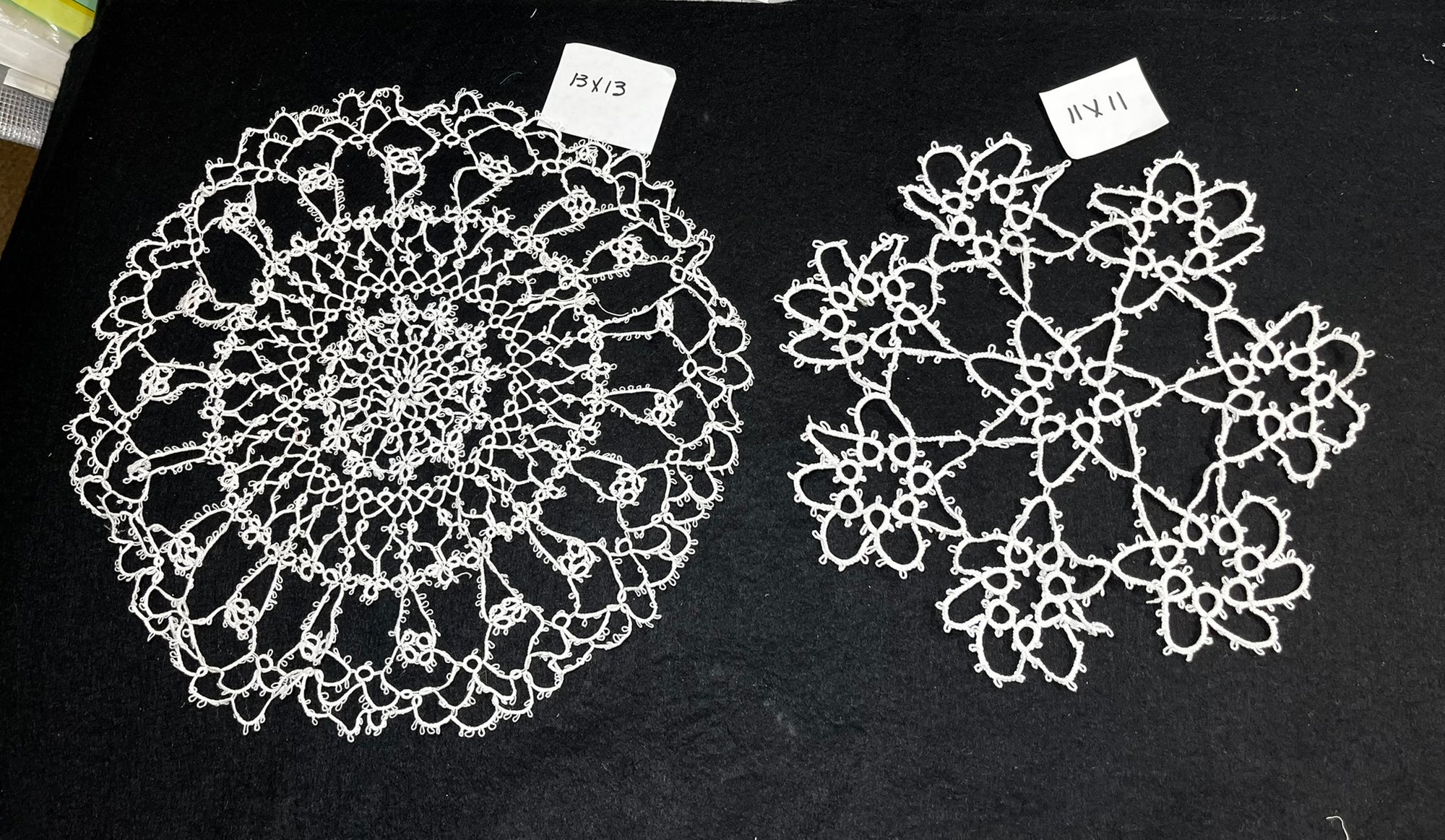 Vintage, handmade tatted doilies. 13x13 and 11x11.