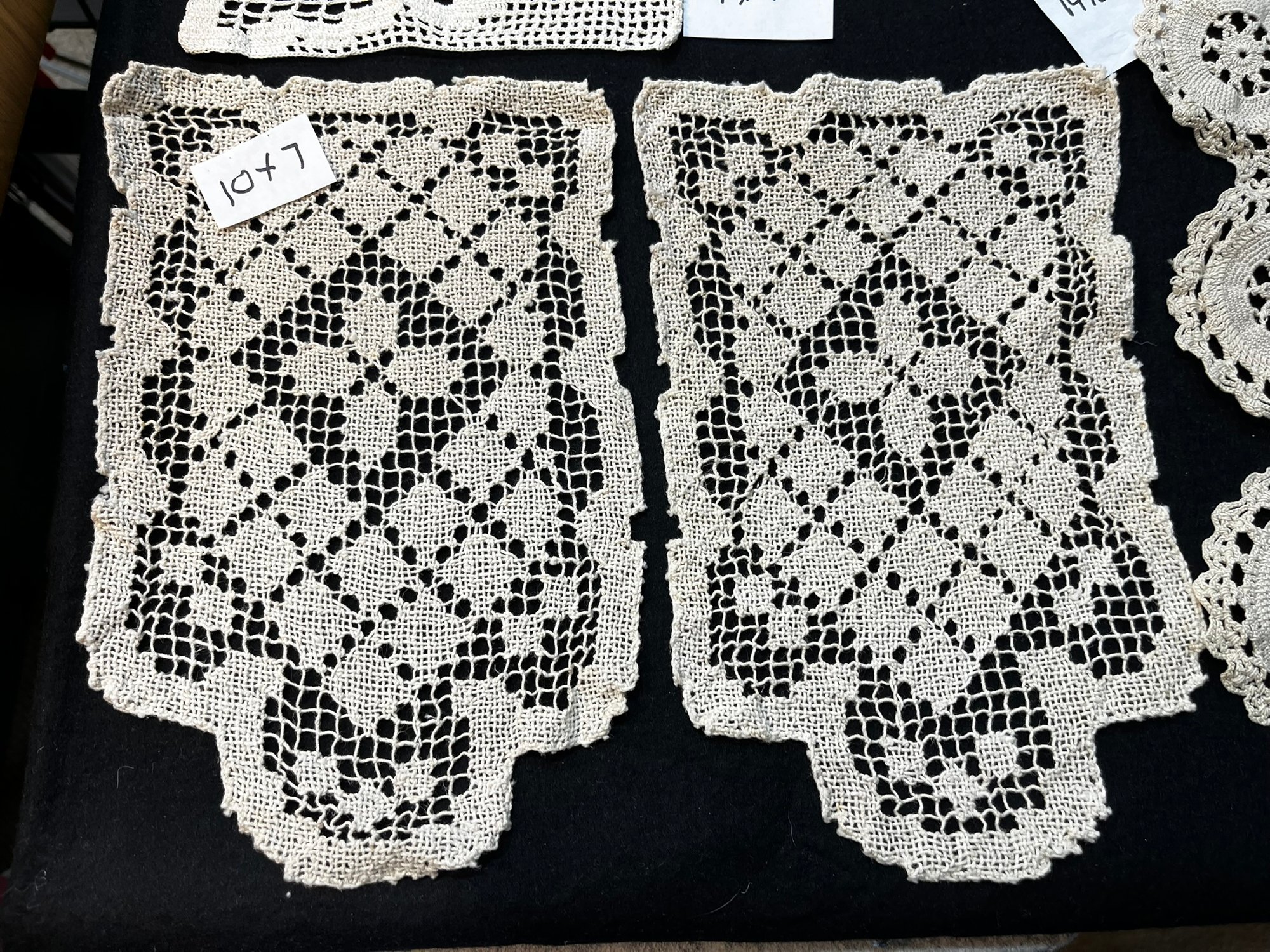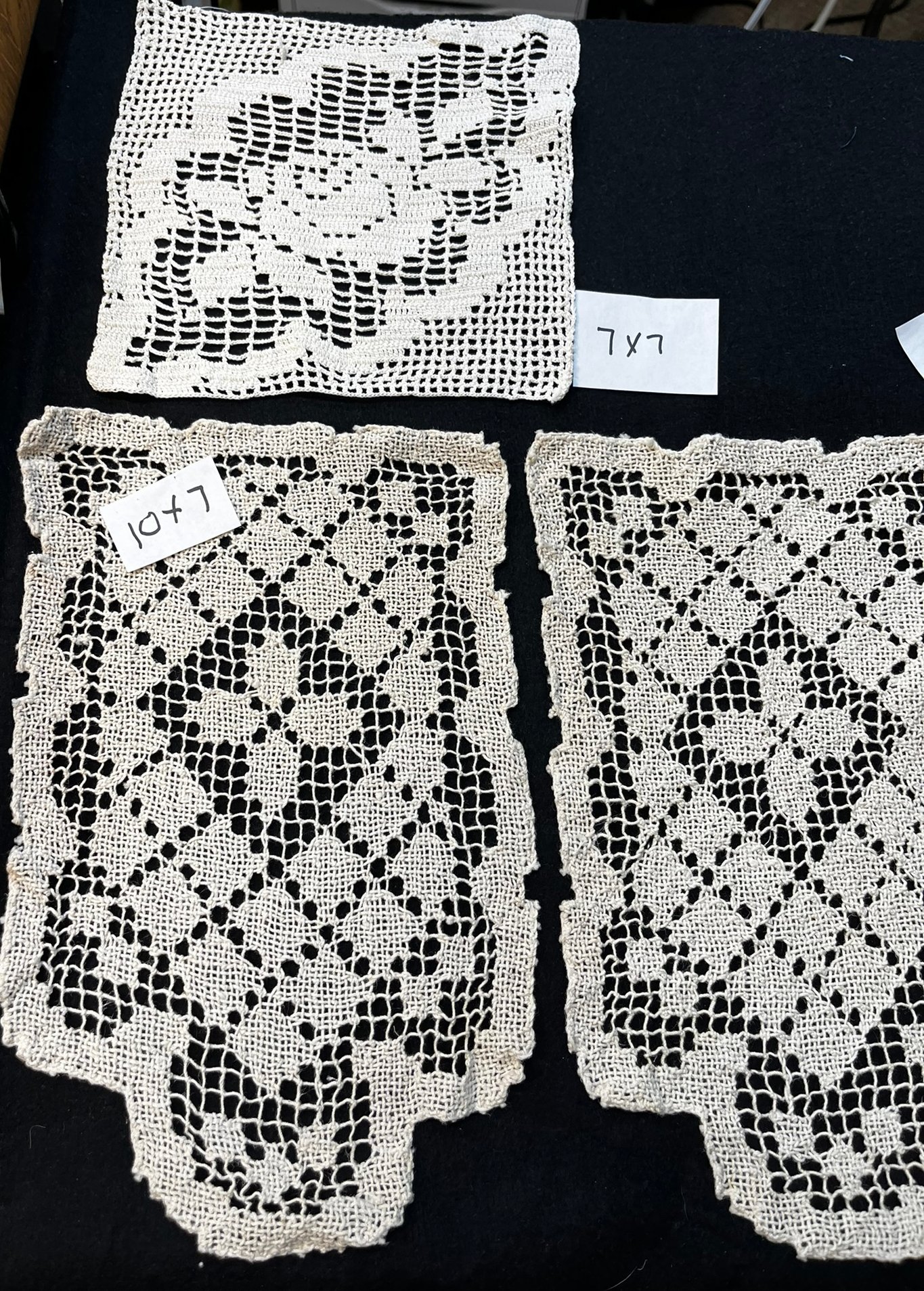 Vintage handmade cotton doilies. 7" by7" through 14" by 14". Perfect for your craft projects!