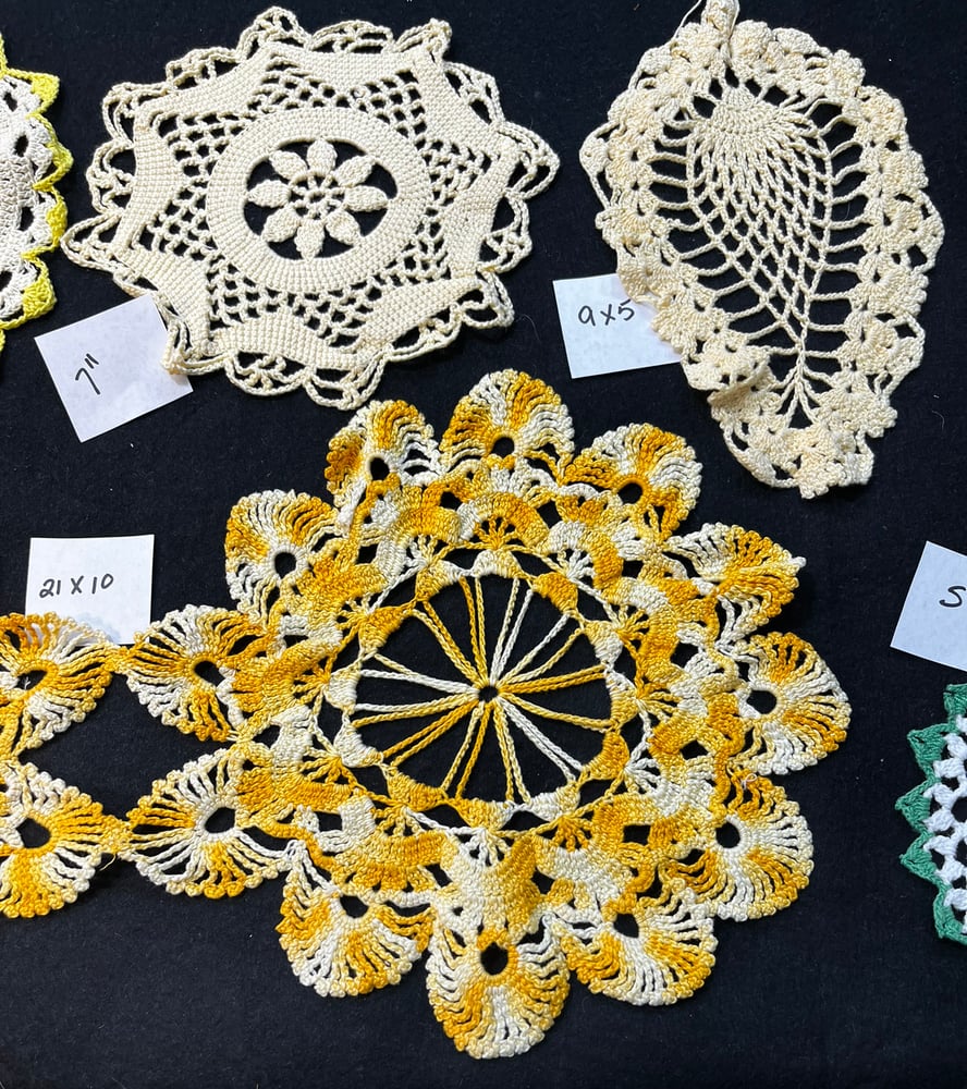 Lot of 7 Yellow, Gold & Green Vintage Cotton Doilies